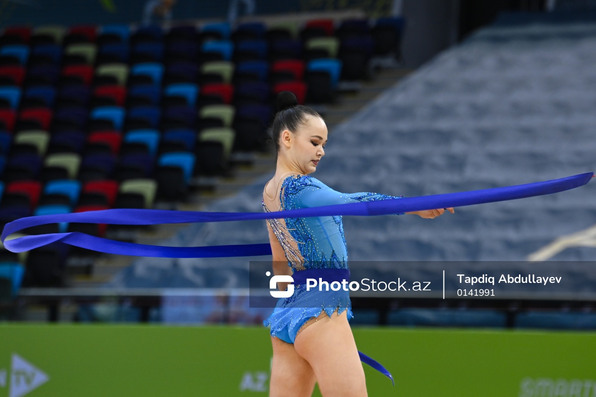 Bakıda keçirilən bədii gimnastika üzrə Dünya kubokunda iştirak edən Avstriya təmsilçisi Maya Nikonçuk.