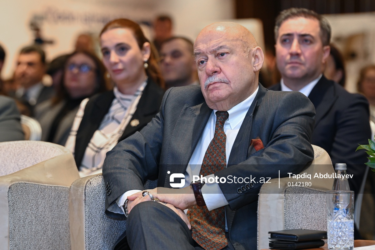 "Memarlıq və Şəhərsalma ili" çərçivəsində "Qadın iştirakçılığının təbliği" mövzusunda konfransda çıxış edən Azərbaycan Memarlar İttifaqının İdarə Heyətinin sədri Elbay Qasımzadə.