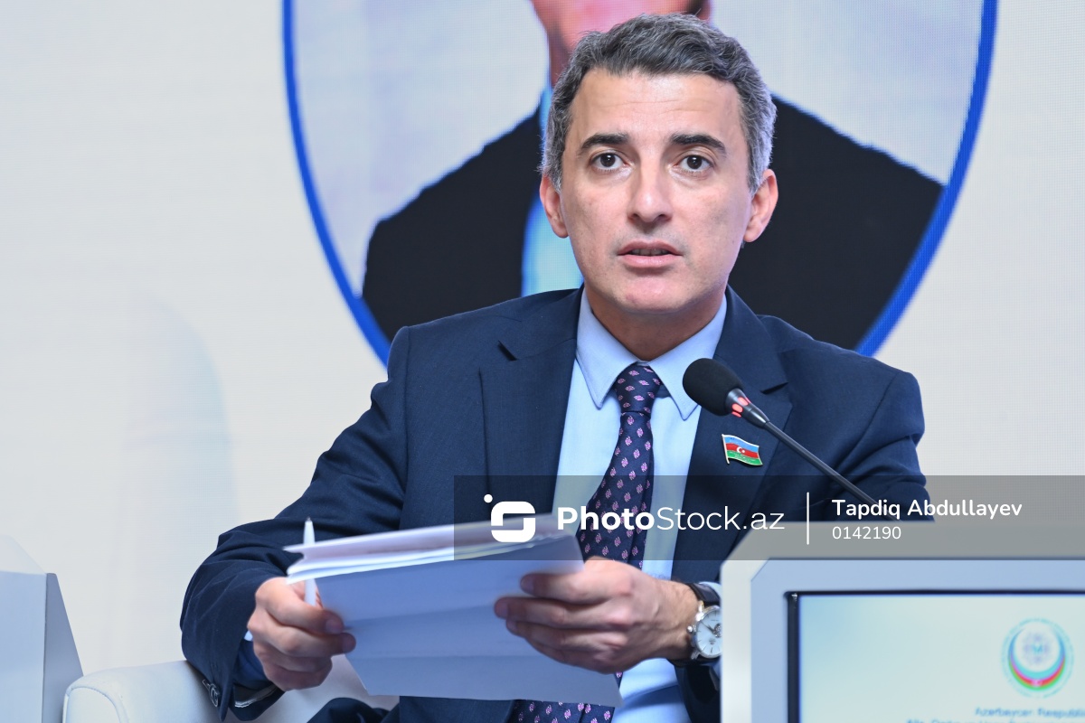 "Memarlıq və Şəhərsalma ili" çərçivəsində "Qadın iştirakçılığının təbliği" mövzusunda konfransda çıxış edən Azərbaycan Respublikasının Milli Məclisinin deputatı, “ADA” Universitetinin prorektoru Fariz İsmayılzadə.