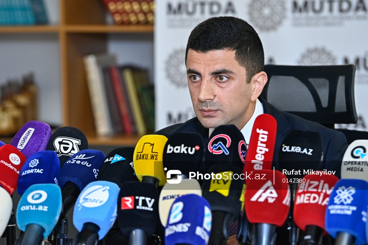 Məktəbəqədər və Ümumi Təhsil üzrə Dövlət Agentliyinin (MÜTDA) media üçün brifinqində çıxış edən Agentliyin direktoru Eşqi Bağırov.