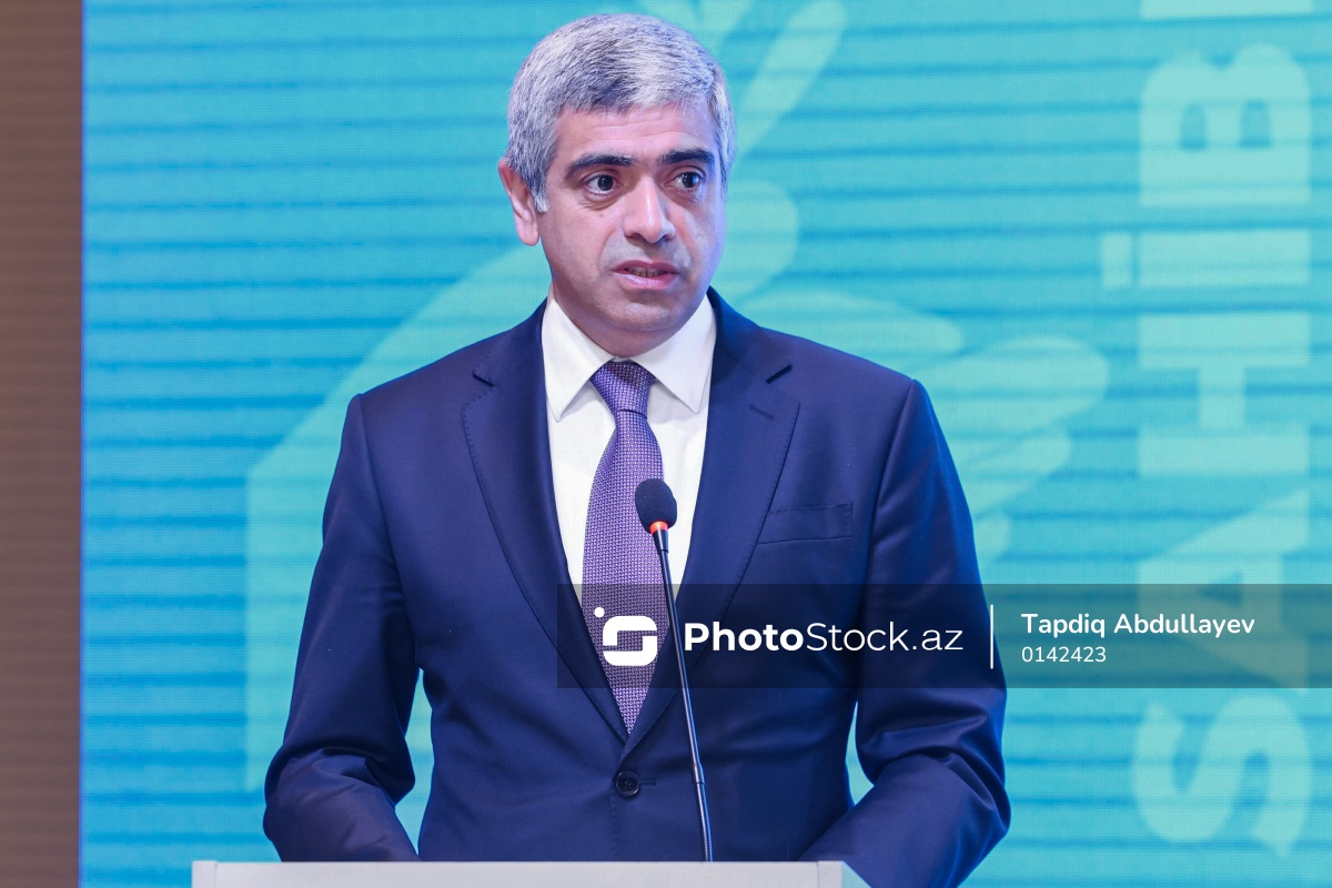 "Sahibkarlığın inkişafı güclü iqtisadiyyatdır" adlı tədbirdə çıxış edən Azərbaycan Respublikasının əmək və əhalinin sosial müdafiəsi naziri Anar Əliyev.