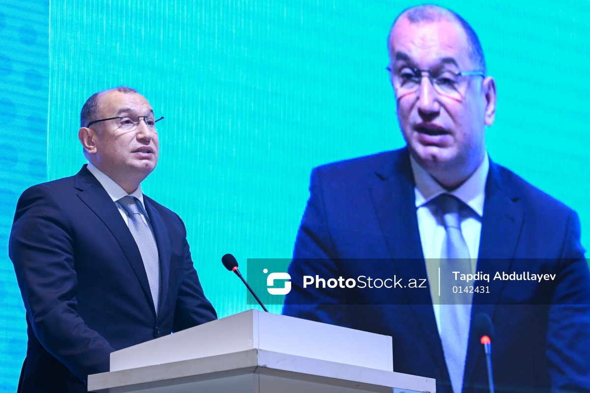 "Sahibkarlığın inkişafı güclü iqtisadiyyatdır" adlı tədbirdə çıxış edən Azərbaycan Həmkarlar İttifaqları Konfederasiyasının sədri Sahib Məmmədov.