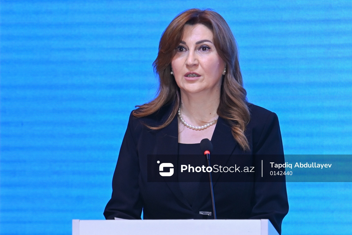 "Sahibkarlığın inkişafı güclü iqtisadiyyatdır" adlı tədbirdə çıxış edən Məlhəm Beynəlxalq Hospitalın icraçı direktoru Sevda Əlizadə.