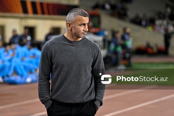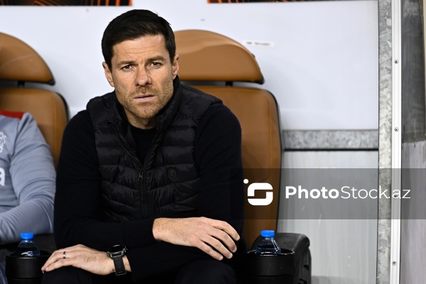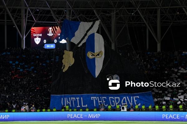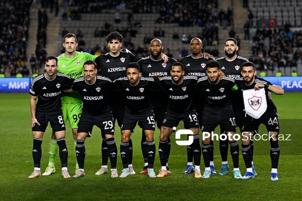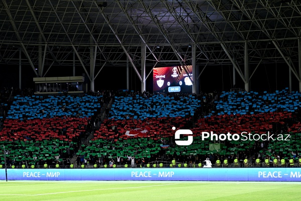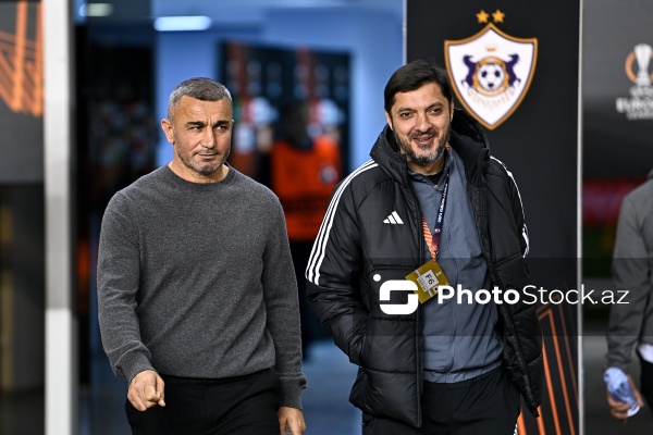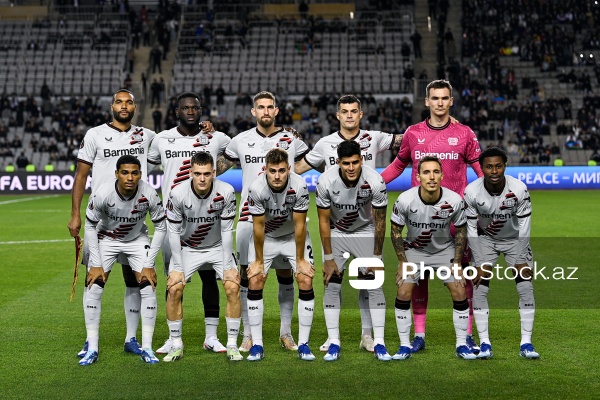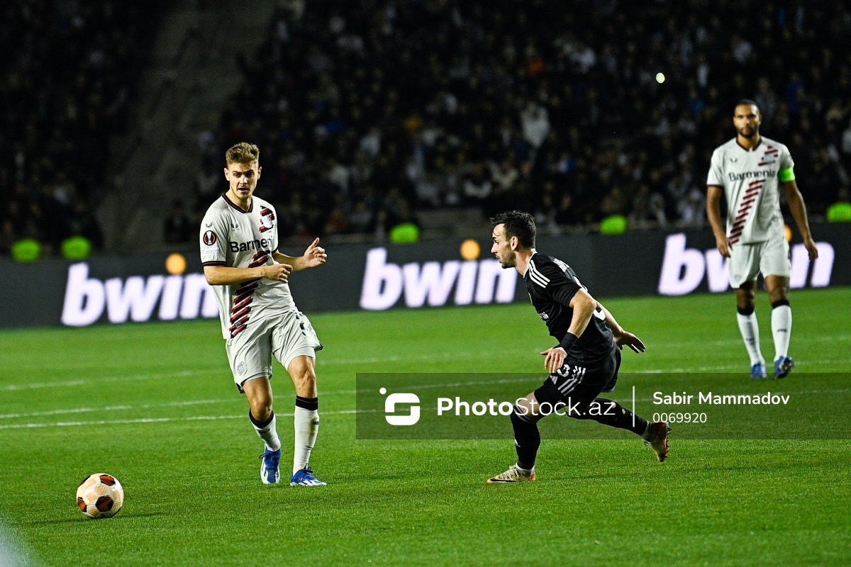 09.11.2023, Bakı, Tofiq Bəhramov adına Respublika stadionu, Avropa Liqası “Qarabağ” - “Bayer 04” matçı. “Qarabağ”dan Marko Yankoviç (sağda), “Bayer 04”dən Yosip Stanisiç (solda) ilə mübarizə aparır.