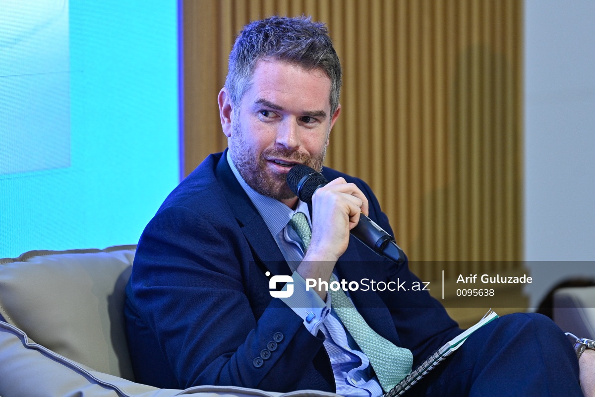 “İqlim keçidi planları: çətinliklər və həll yolları” mövzusunda keçirilən panel müzakirəsində iştirak edən JP Morgan İcraçı Direktoru, Davamlılıq və Ətraf Mühit, Sosial və Korporativ İdarəetmə Departamentinin rəhbəri Luke Nelson.