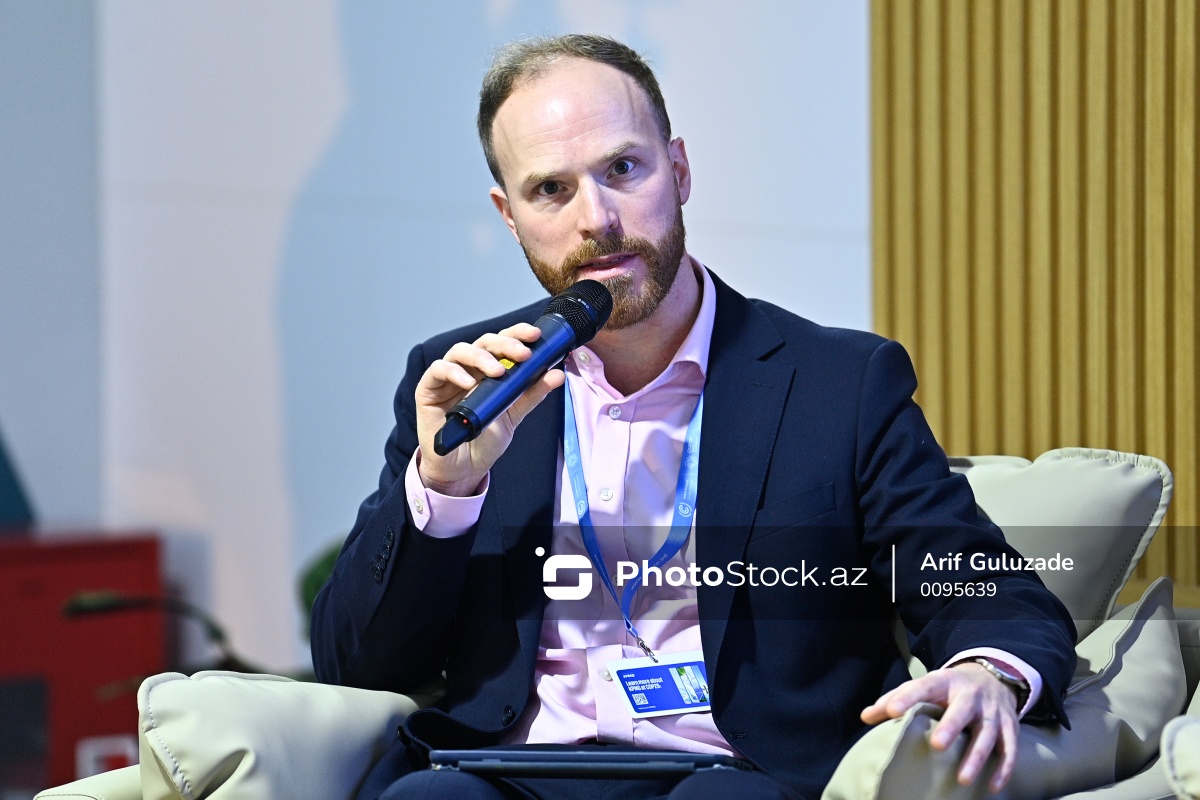 “İqlim keçidi planları: çətinliklər və həll yolları” mövzusunda keçirilən panel müzakirəsində iştirak edən KPMG nümayəndəsi Simon Weaver.