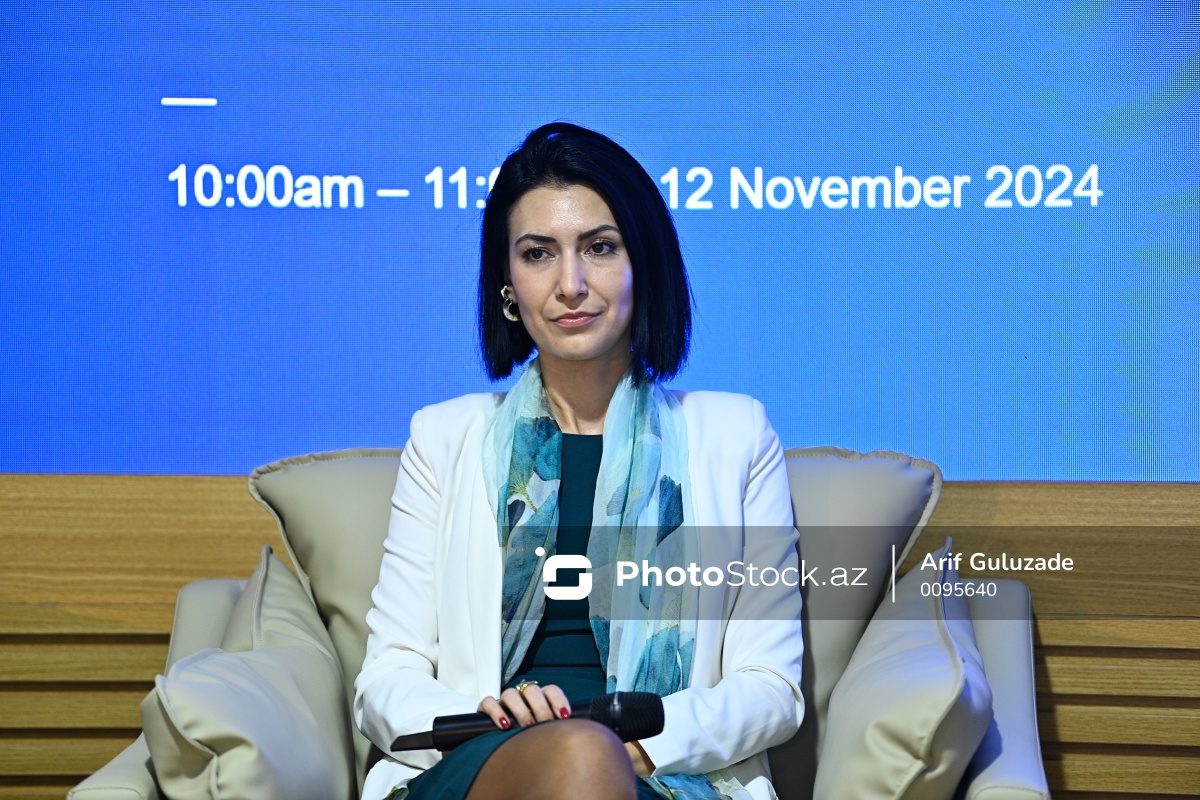 “İqlim keçidi planları: çətinliklər və həll yolları” mövzusunda keçirilən panel müzakirəsində iştirak edən Kembric Davamlı İnkişaf İnstitutunun (CISL) baş layihə meneceri Svetelina Kuzmanova.